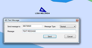 Pour envoyer un message manuellement, faites un clic droit sur une cible AIS et sélectionnez "Envoyer un message texte". Sélectionnez le type de message (Normal ou Sécurité), tapez le message et cliquez sur "envoyer" :