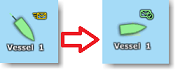 Par défaut, la légende qui s'affiche sous l'icône est le nom du navire (tel qu'il est donné par le serveur du suivi de flotte). Cependant, vous pouvez définir un surnom personnalisé (à partir de la liste des cibles ou des propriétés des cibles) qui sera utilisé à la place.