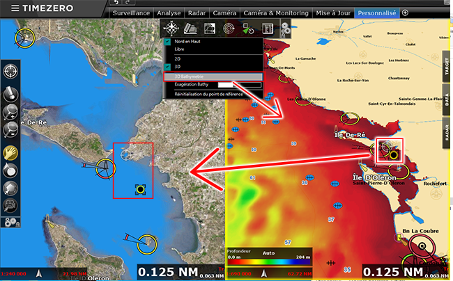 Espace "Monitoring" : cet espace de travail est affiché par défaut au démarrage de TimeZero. Cet espace de travail est volontairement limité en fonctionnalités pour faciliter la surveillance de la situation en temps réel.