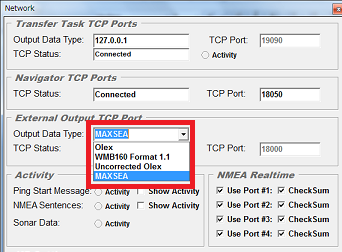 Sélectionnez "MAXSEA" dans la zone "External Output TCP Port" :