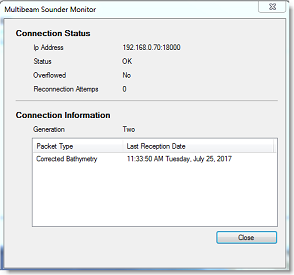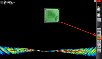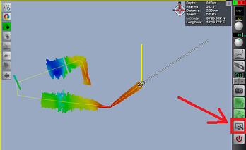 Vous devriez maintenant recevoir les données de navigation et être en mesure d'enregistrer les données de profondeur multifaisceaux et les données de dureté des fonds (Backscatter) en cliquant sur le bouton "PBG" dans la barre d'outils.