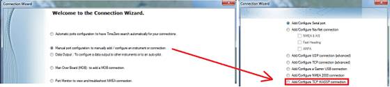 Cochez "Configuration Manuelle d'un port" puis "Connexion TCP WASSP"