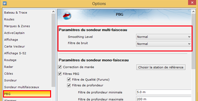 Cliquez sur l'option "PBG" pour configurer la résolution de la base des données de profondeur et le niveau de lissage :