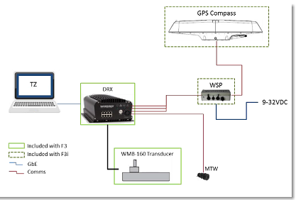 Le PC TIMEZERO et le système WASSP sont connectés via un câble Ethernet. Les sondeurs WASSP de 1ère génération (WMB-160F/80F) et de seconde génération (WMB-32x0/5230) nécessitent un ordinateur WASSP dédié au post-traitement et un ordinateur supplémentaire pour exécuter TIMEZERO. Avec le WASSP de 3ème génération (S3, F3 et F3L), vous n'avez pas besoin d'ordinateur pour le post-traitement et l'ordinateur TIMEZERO peut être directement connecté au boîtier de la Black Box WASSP (DRX).
