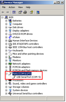 To make sure the drivers are correctly loaded, open the "Device Manager" and look for a COM port under "Ports (COM & LPT)":