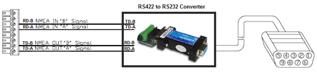 RS-422 has been selected as a preferred interface to transmit NMEA0183 data. RS-422 uses a differential signal instead of a single ended signal used by RS232. Where a single-ended system will start to become unreliable after a couple dozen feet, a differential system can be reliable for several hundreds of feet. In an electrically noisy environment, this can make a big difference. With RS-422 (differential signal), 4 wires are used (two to transmit and two to receive). Note that there is no common ground with RS-422 (no “signal ground”). The transmit and receive lines use their own “point of comparison”.
