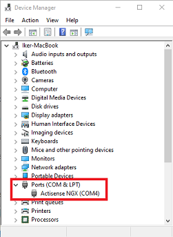 Before connecting the Actisense USB adapter to the computer, you must install the driver provided by Actisense, available from their website. After the driver installation is complete, connect the Actisense adapter to the computer. To verify that the driver is installed correctly, open the Device Manager by right clicking on the Windows Start button and confirm that the Actisense NGT or NGX is listed under Ports (COM & LPT):