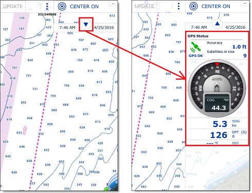 Note: When you add too many NavData or when the list are displayed at bottom of the screen, the NavData may eventually "overflow" and not be visible anymore. If you see the overflow icon at the bottom of the NavData panel, it is recommended to delete some NavData to free up space:
