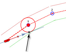 Upon arrival at a Waypoint, a switching notification is triggered and the next Waypoint is activated automatically. Waypoint arrival parameters are determined by the Waypoint Switching Mode selected in the Routes Options: