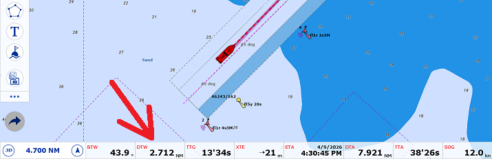 If you prefer to focus solely on the Active Waypoint (the next waypoint destination), you can use the Waypoint NavData. . It combines a “highway” display (also known as the Helmsman display) with Cross‑Track Error (XTE) and Bearing to Waypoint (BTW) information on a single screen.