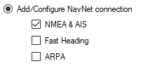 In TimeZero, the only required configuration is adding a NavNet connection through the Connection Wizard. To do this, open the Connection Wizard, choose “Manual Port Configuration,” select “Add/Configure NavNet Connection,” and check the “NMEA & AIS” box: