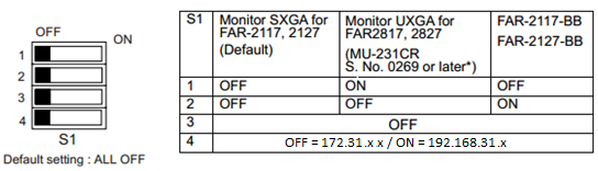IMPORTANT: The FAR2xx7 IP address must be set up to 172.31.3.6. TimeZero will not be able to connect to the radar if the FAR2xx7 is set to another type of IP address. If the FAR is set with an IP address of 192.168.31.x (for ECDIS), make sure to revert DIP#4 to the OFF position on S1, then perform a factory reset. This will switch the FAR back to the Class B 172.31.x.x IP address: